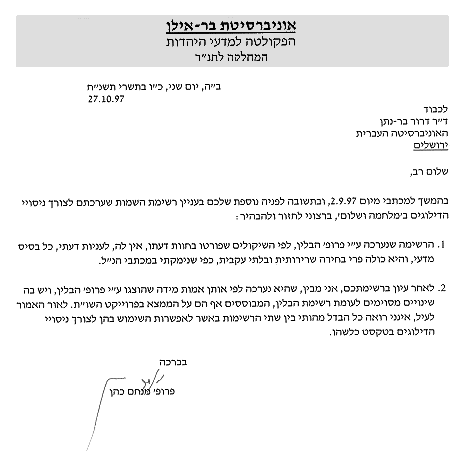 A Letter by Professor Menachem Cohen